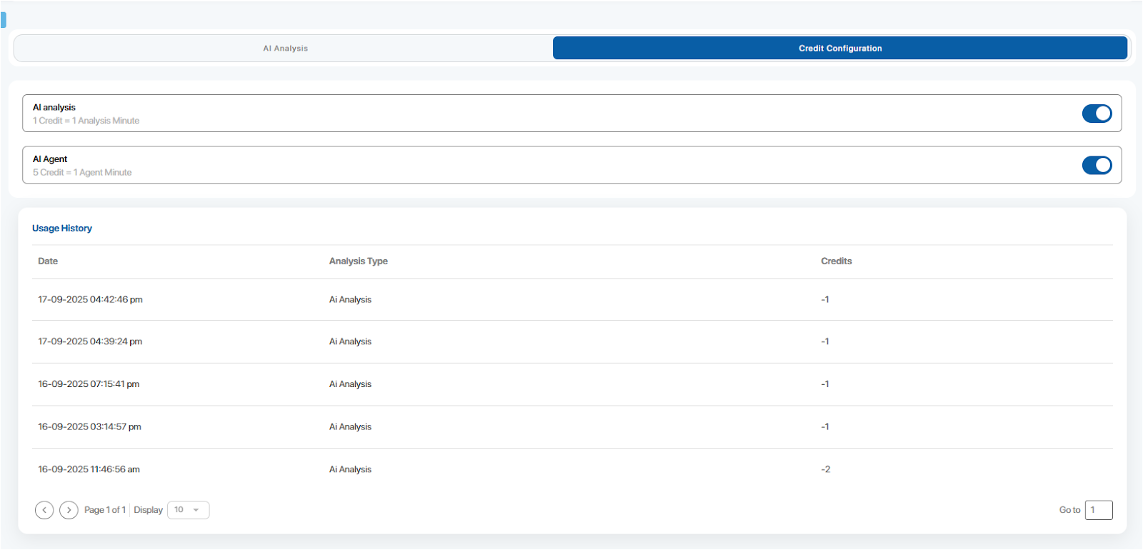 Credits Left: A counter showing how many credits are still available for AI analysis.