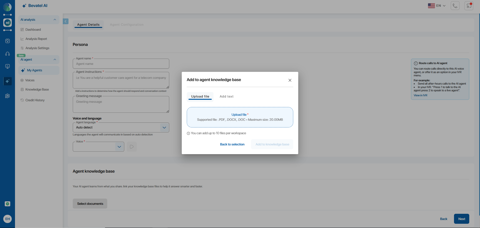 Bevatel voiceAgent is an AI-powered virtual agent designed to handle voice interactions autonomously, helping businesses scale and streamline their call workflows.