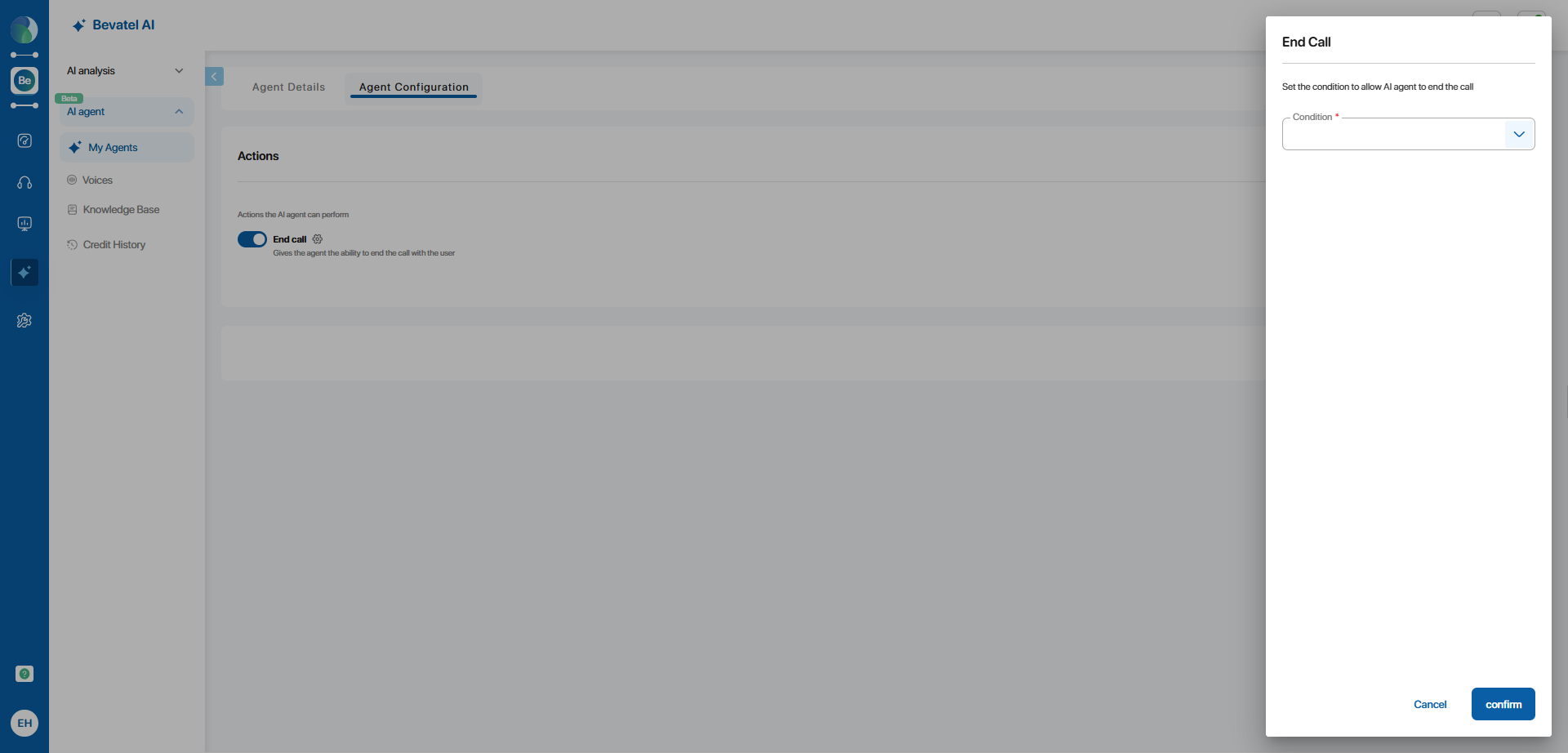 This configuration allows you to define conditions under which the AI agent is allowed to end a call automatically ,improving efficiency and avoiding dead-air time.